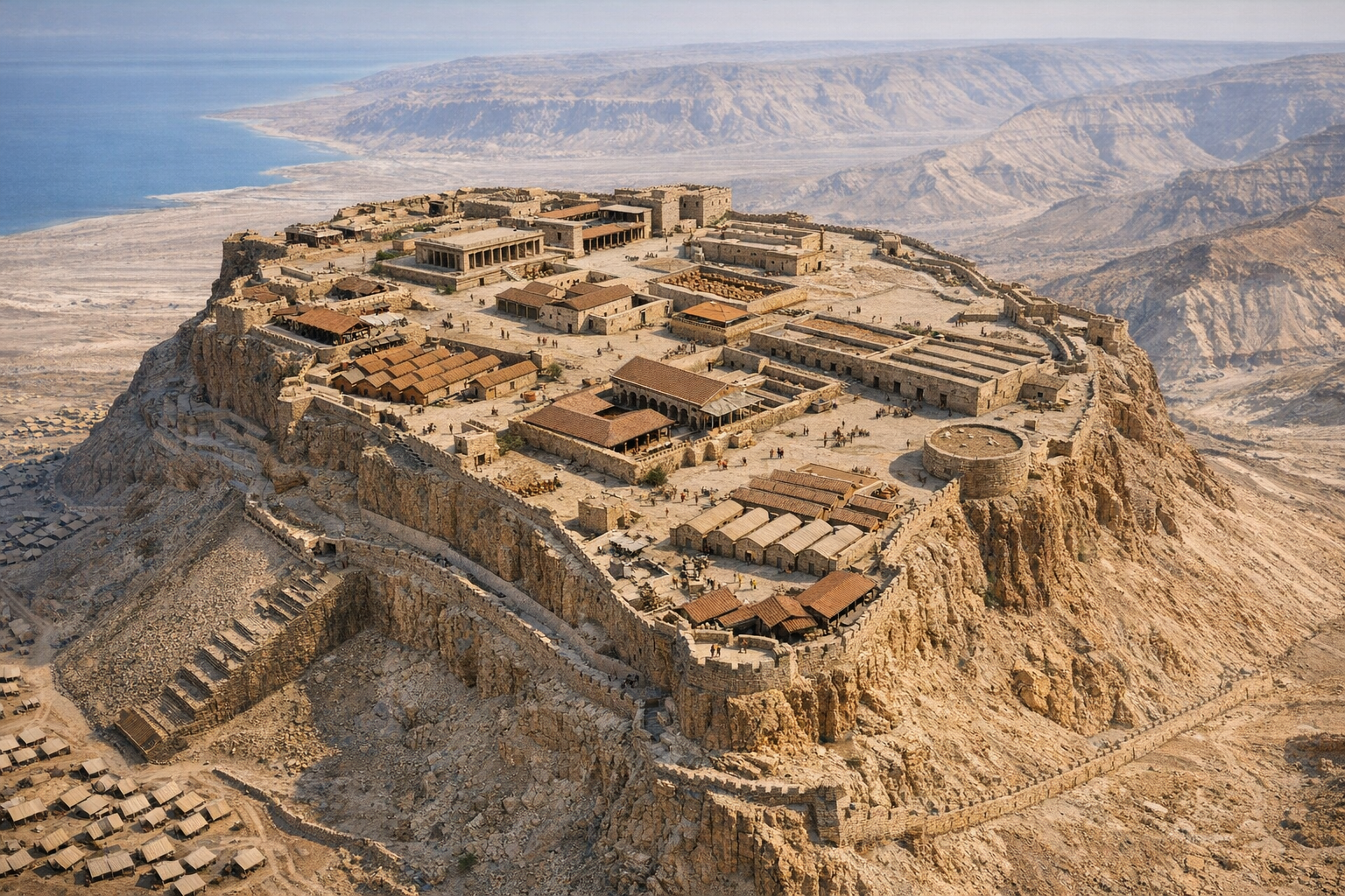 이스라엘 사해 서쪽, 해발 약 400미터 높이의 거대한 바위 고원 위에 자리한 마사다 요새는 단순한 고대 유적이 아니다. 이곳은 로마 제국이라는 세계 최강의 권력에 맞선 한 공동체의 마지막 무대였다. 절벽 아래는 깎아지른 낭떠러지이고, 위로 오르는 길은 구불구불한 좁은 통로 하나뿐이다. 이 극단적인 고립은 훗날 저항의 상징이 된다.