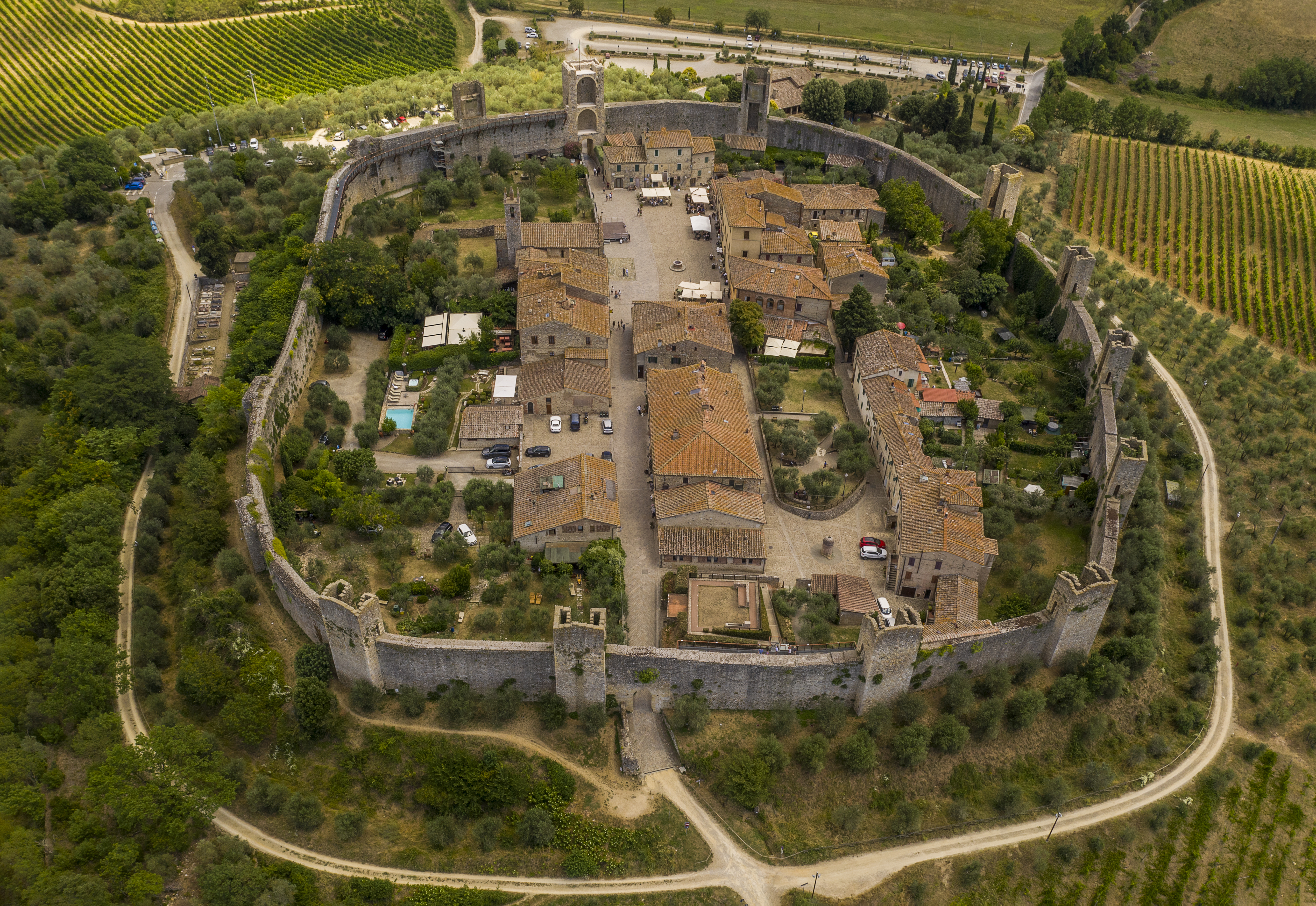 몬테리지오니 성: 원형 성벽이 완성한 중세 방어의 이상형
