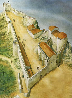 아래쪽 성벽에서는 주변 계곡과 평야를 감시할 수 있었고, 위쪽 요새에서는 더 넓은 지역을 감시할 수 있었다.